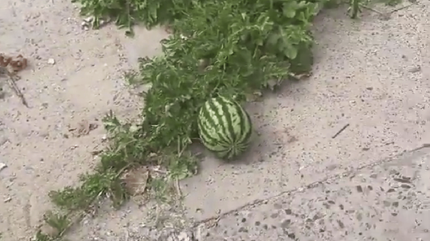 Несмотря на войну и постоянные обстрелы, в Херсоне посреди города вырос арбуз. "Урожай" заметили местные жители вблизи центрального рынка, который разрушили российские оккупанты.
