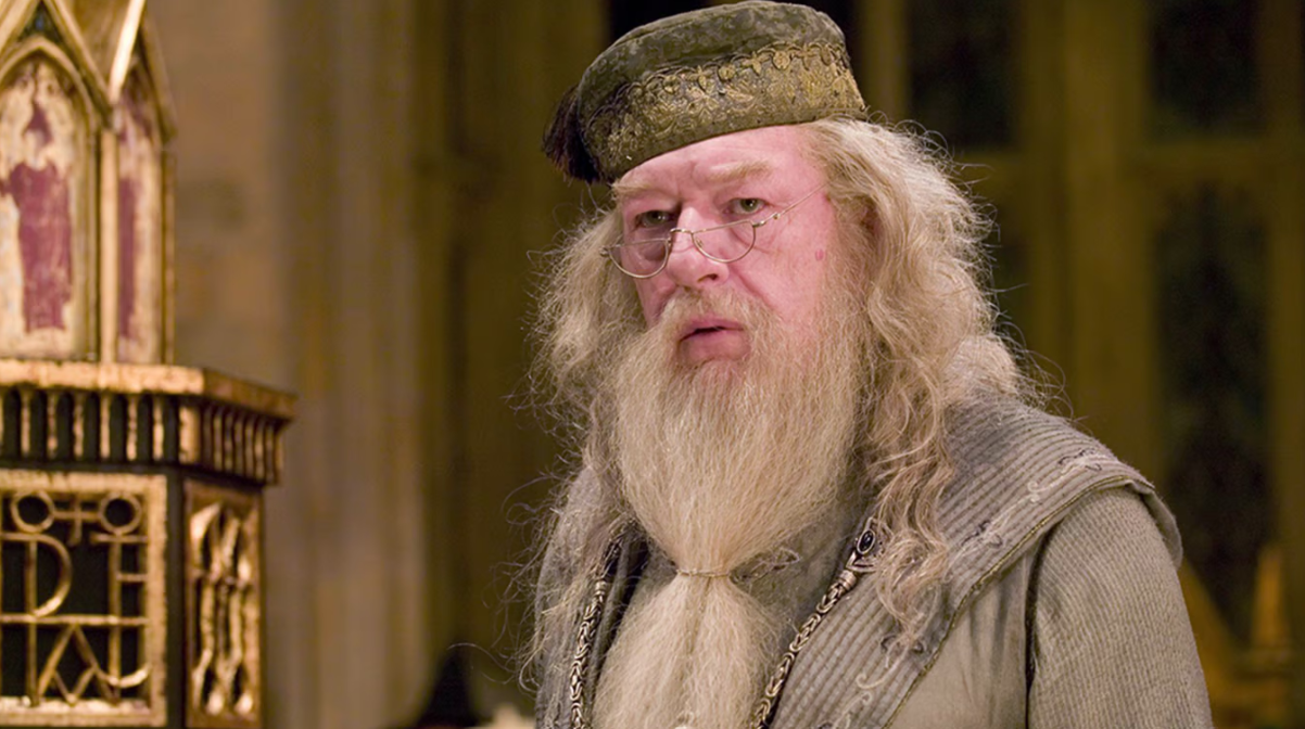 Кадр из фильма "Гарри Поттер", актер Майкл Хэмбон в роли Дамблдора
